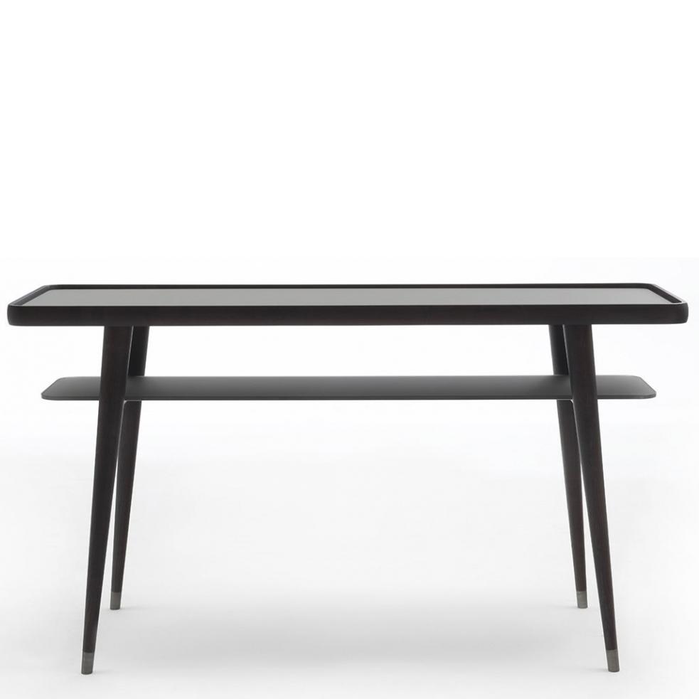 Console with frame in solid ash wood with glass or marble shelves. Featuring gracious curved-corners and metal end-feet, Chantal delivers a strong mid-century aesthetic